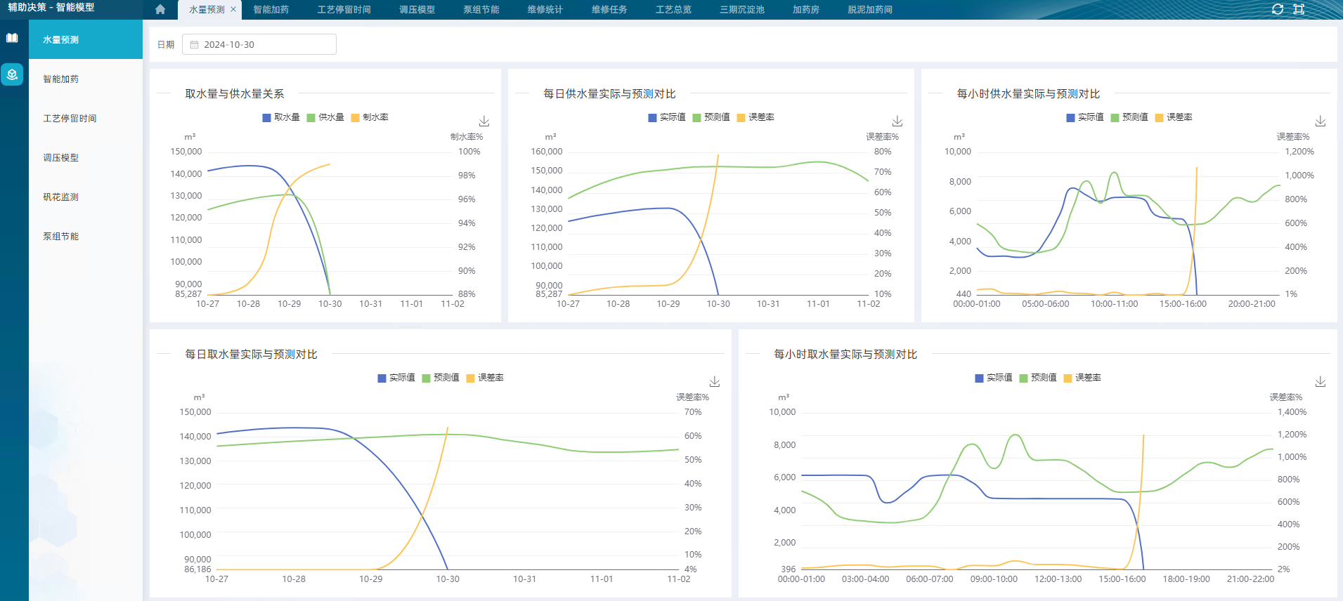 以多維度統(tǒng)計圖表的方式展現(xiàn)績效結(jié)果,識別凈水廠運行管理薄弱環(huán)節(jié),為水廠運行管理優(yōu)化提供豐富的數(shù)據(jù)展示企業(yè)門戶和決策支持,使得管理者的決策更加綜合、合理、可行,形成智能化、科學(xué)化決策,為全廠可視化、精細(xì)化、智慧化運營提供數(shù)據(jù)依據(jù)和強有力的支撐。
