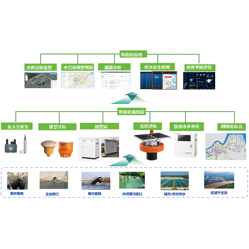 系統運用現代傳感器、自動測量、智能控制、遠程監控等技術, 結合相關專用分析軟件,對地表水水質( PH、濁度、電導率、溶解氧、溫度、高錳酸鹽指數、氨氮、總磷、總氮等指標) 進行實時在線監測、記錄水質變化情況,