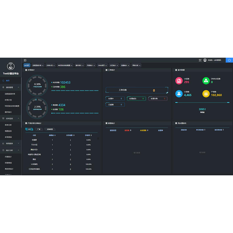 管理在線儀表(包括大口徑水表、流量計、壓力儀、濁度儀、余氯儀、PH儀和消防栓等),進行實時監(jiān)控、數(shù)據(jù)采集和分析管理,及時發(fā)現(xiàn)大用戶異常用水和水表運行異常等情況,實時監(jiān)控分析管網(wǎng)壓力、水質、消防用水等,從深層次發(fā)現(xiàn)供水管網(wǎng)運行情況。